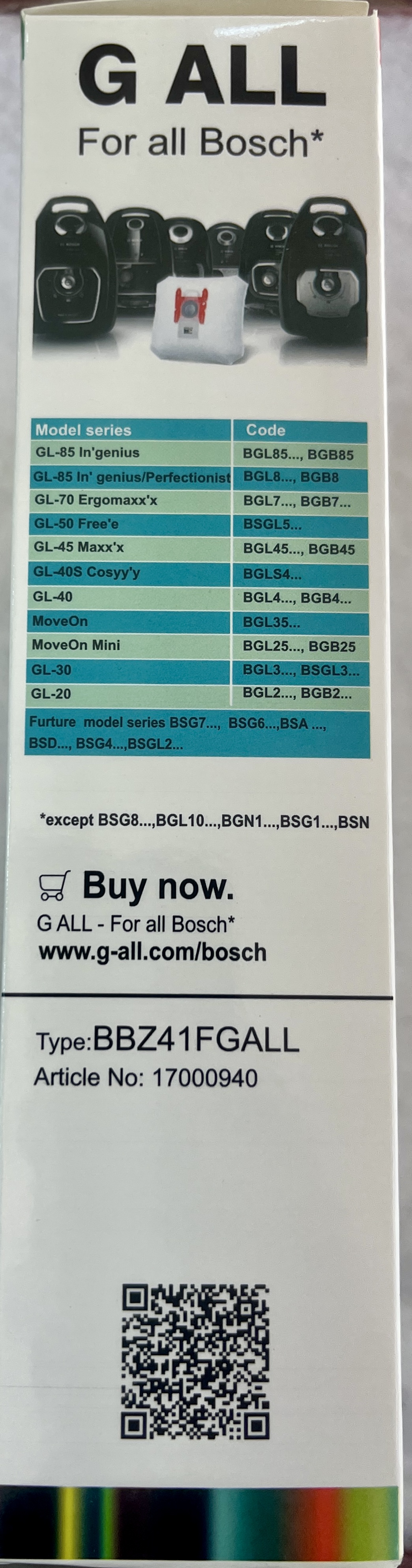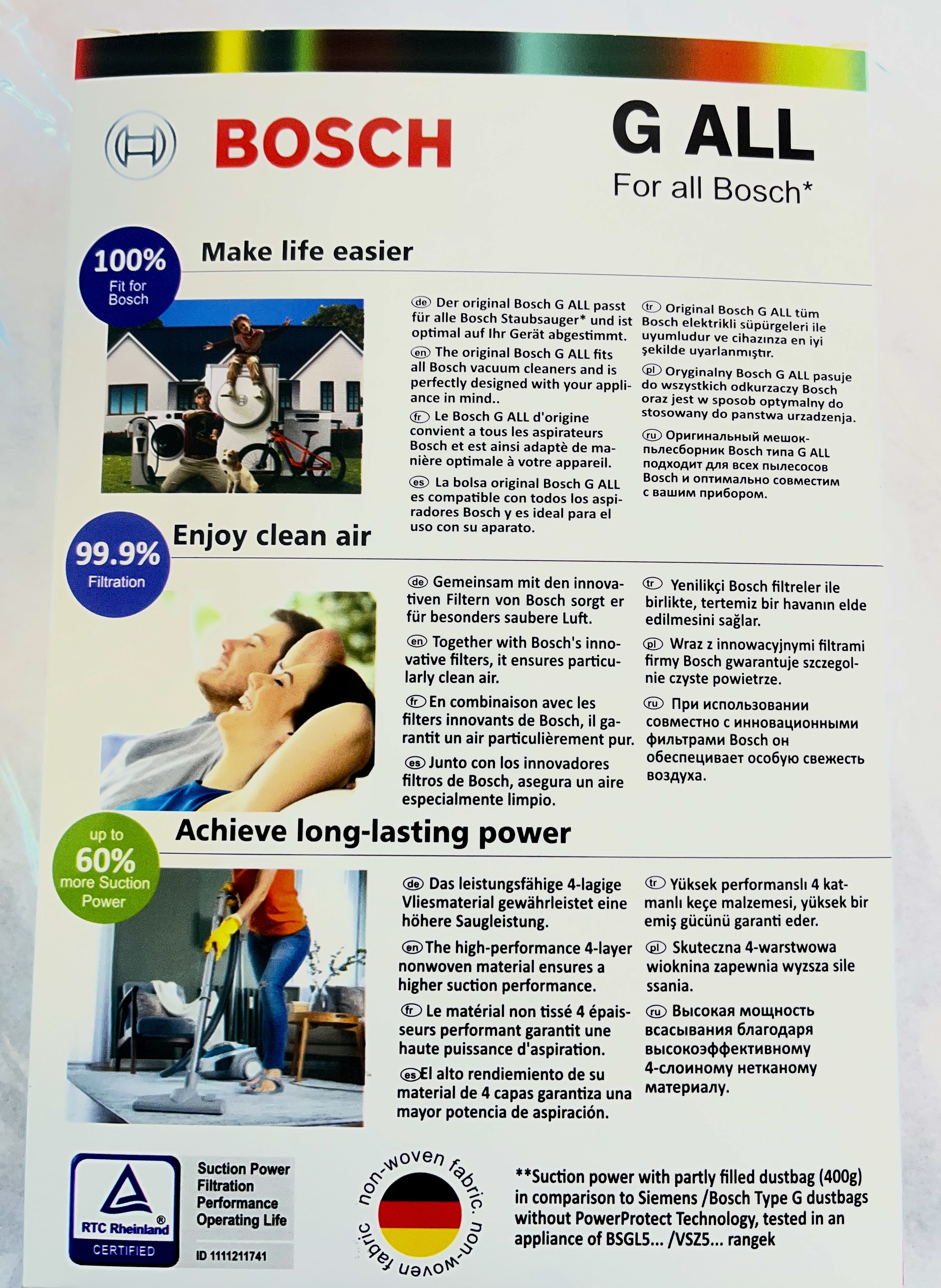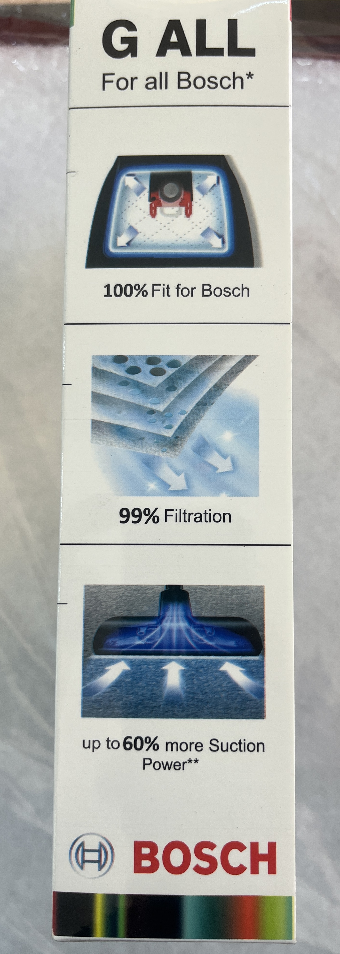 کیسه جارو برقی بوش تایپ G زیمنس مناسب برای تمامی جاروبرقی های بوش و پارس خزر 2200 2000 1800 1600 2500 سایا زنیت و مدل های مشابه می باشد این کیسه ها میکرو فیلتری بوده وجذب حداکثری گرد وغبار را انجام میدهد که باعث افزایش طول عمر موتور جاروبرقی میشود مشخصات فنی محصول: ** مشخصات ** ابعاد: 5x2x25 سانتیمتر وزن: 200 گرم