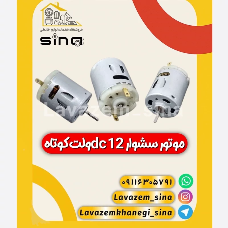 مناسب برای:موتور سشوار و سایر لوازم برقی و ساخت کاردستی ویژگیهای محصول ابعاد موتور: 27.5*38 میلیمتر طول شفت: 13 میلیمتر قطر شفت: 2.3 میلیمتر ولتاژ مورد نیاز: 12 ولت
